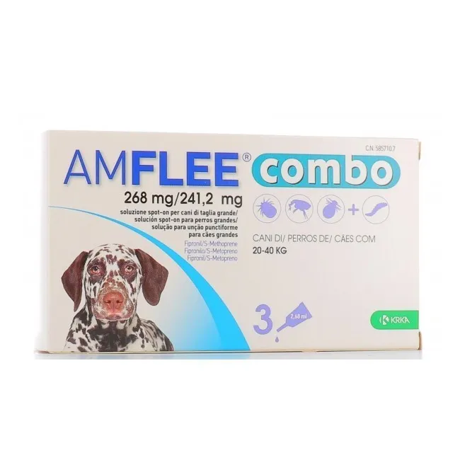 Dettagli AMFLEE COMBO*spot-on soluz 3 pipette 2,68 ml 268 mg + 241,2mg cani da 20 a 40 Kg